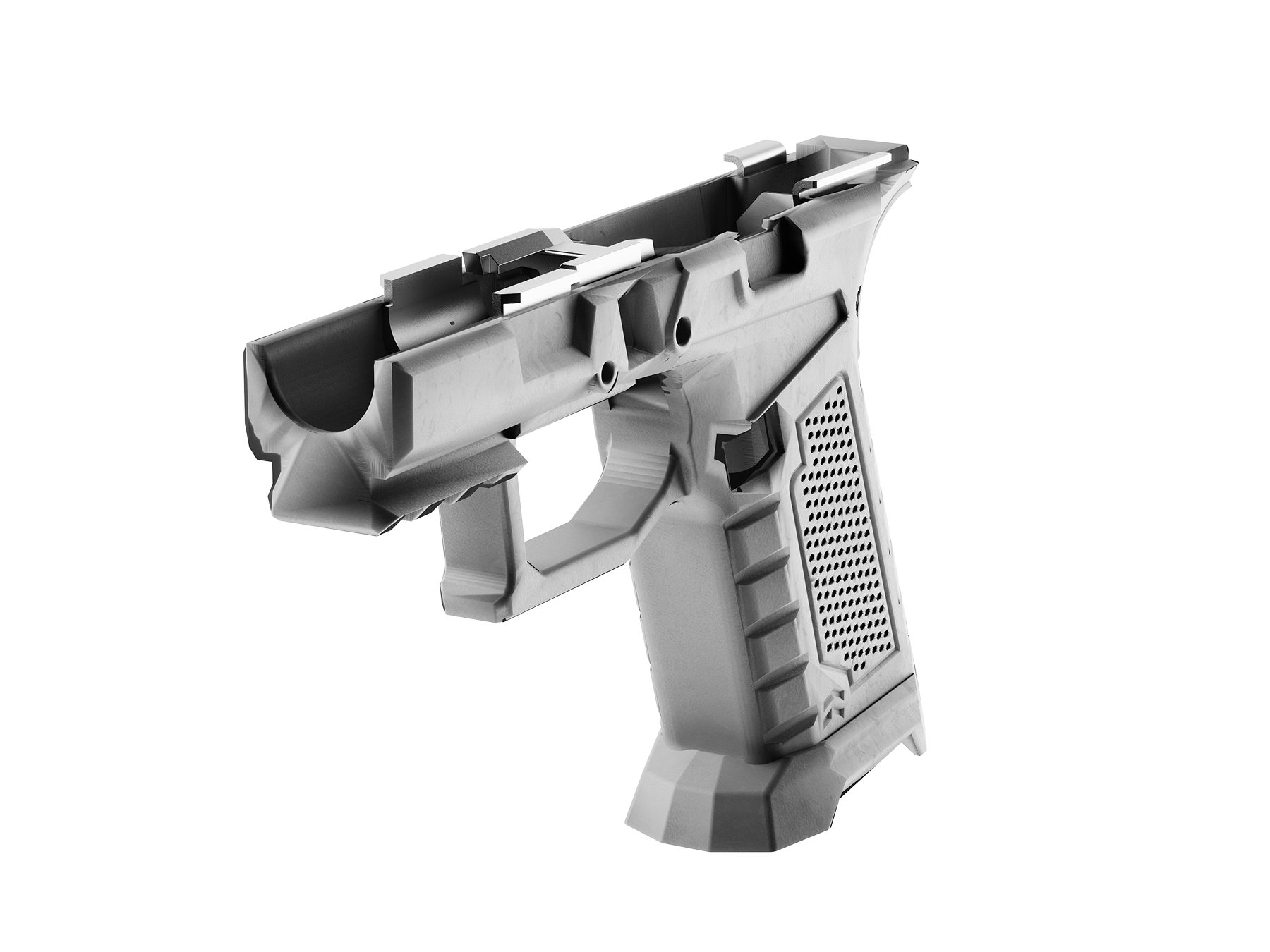 A complete Glock 43X parts kit built for 3D-printed frames. The PBS 43X includes precision-cut metal rails and all essential internals — no guesswork. Simply print your grip module, install the components, and assemble with your slide.